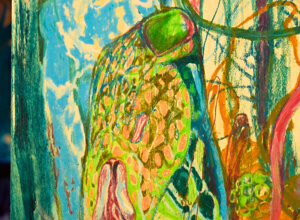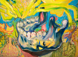 After my house burned, I went into a time of shadows. I had finished the project that had pulled me onwards for over a year and nothing was left, not even the comfort of my own bed to rest and recover. I was falling in love very deeply for the first time in a long time - and that alone, made my shadow soar. In the darkness, a story emerged from the depth of my memory; Skeleton Woman, as told by Clarissa Pinkola Estes in Women Who Run With The Wolves. In her retelling of this powerful Inuit tale, she speaks of the power of love to heal ancient wounds - and how these wounds come to the surface to be held. It helped make sense of the deep chaos I was feeling and why suddenly ancient traumas reared their heads. As I was holding to that story, I found a book of life-size photographies of bones, the entire skeleton all together than all apart. And so, I started painting her - skeleton woman - my wounded deep self demanding to be loved, to be brought to light. It was the slowest painting I have done - most of it was time spent sitting with her, crying with her, looking more itensely than I knew I could. It took many months, but it transformed me and my way of painting completely. It taught me so mucha bout myself - and about my practice. How ironic that from facing the parts of me I struggle to love, my favorite painting ever could emerge. But such is the nature of shadow work: in holding space for discomfort, magic is born.