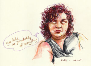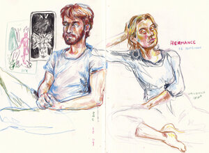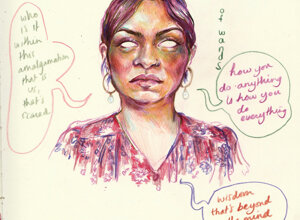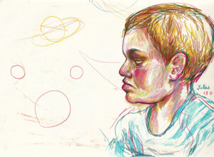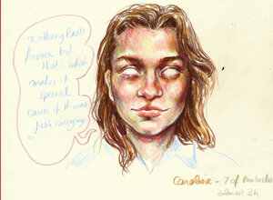 I truly believe that portraiture goes far beyond capturing someone's likeness, but speaks of that space in between things, the liminal shifting frontiers between skins, souls, worlds and all that takes place there. The time exchanged together lingers and infuses the fixed lines and colors with a life of their own, telling the tale of the encounter, a moment captured slowly. Portraits are a radical act of tending to our wounds around being seen and witnessed and can expand wildly our threshold of receiving love, both from ourselves and others. It speaks to our beauty and our capacity to perceive it in ourselves as it is mirrored by the gaze of a stranger.